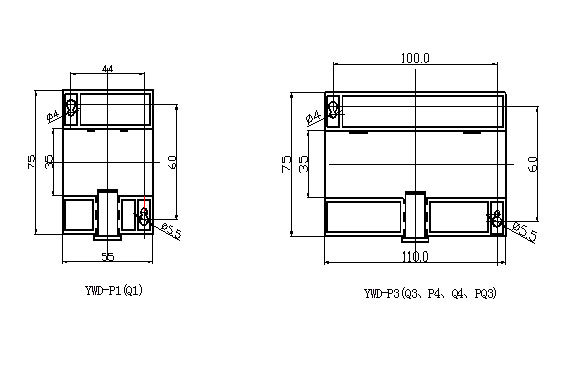 外型尺寸: YWD-P1(Q1): 55mm×75mm×120mm