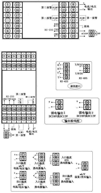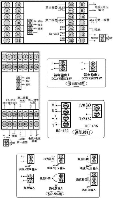 | 二、仪表外形及接线图(以下为基本配线,特殊订货请参考随机接线图) |